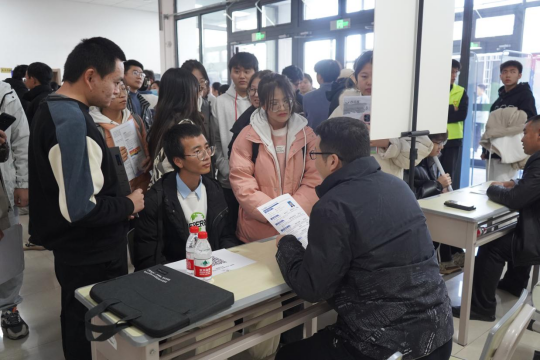 招聘会现场人潮涌动,气氛热烈。各招聘企业积极发放宣传资料,各学院领导、班主任和辅导员在招聘会现场为毕业生们答疑解惑。