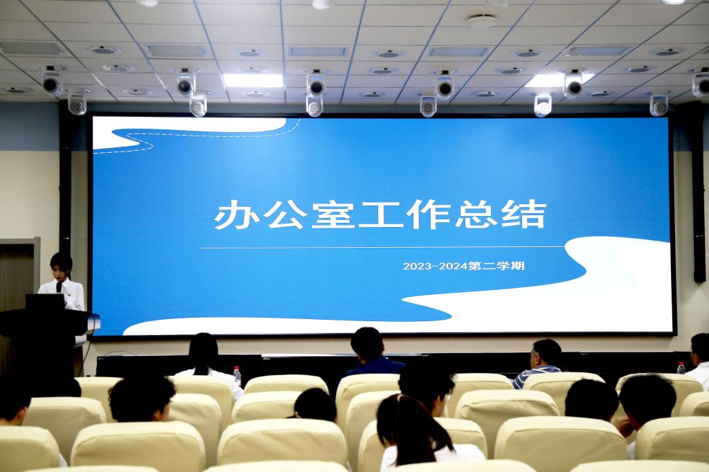 会议伊始,学生会主席团、院团委汇报了一学期工作和成绩,同时也分享了在工作中的经验教训。各部门负责人依次上台述职,他们结合自己的工作实际,以丰富的案例,详细介绍了部门的工作内容和成效,并提出了部门下一阶段的工作计划。
