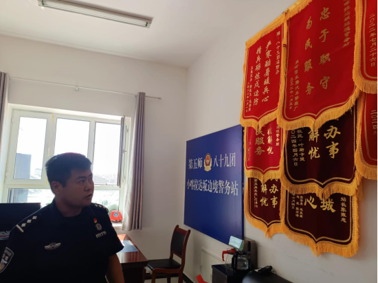 活动中,实践团成员与王永志、张振忠两位同志进行了深入的访谈交流。王永志同志凭借出色的工作表现荣获三等功2次、嘉奖4次及“最美边防卫士”等殊荣;张振忠同志则荣获自治区优秀农村团支部书记、边境管控先进工作者、边防工作先进个人等多项荣誉。荣誉墙上挂满的锦旗,是他们忠诚履职、无私奉献的最好证明。两位同志深情地分享了他们的戍边故事,强调“维稳戍边是兵团人的天职,巡边护边是每名职工的使命,共产党员更应冲锋在前,做表率、当先锋”。