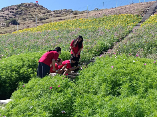 在警务站站长的陪同下,实践团成员听取了警务站基本情况介绍,大家边走边看,边听边思,深刻认识到第五师八十九团虽地处偏远、条件艰苦,但在党的坚强领导和边疆卫士的不懈努力下,这片土地已焕发新生。蔬菜园内,黄瓜翠绿欲滴,秋葵亭亭玉立,西红柿硕果累累,一片生机勃勃的景象。警务站还精心打造了一处花园,向日葵向阳而生,格桑花竞相绽放,成为了一道亮丽的风景线,彰显了人与自然和谐共生的美好愿景。随着生态环境的持续改善,雪豹、猞猁等珍稀野生动物频繁出没,进一步证明了边疆生态保护的显著成效。