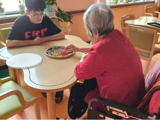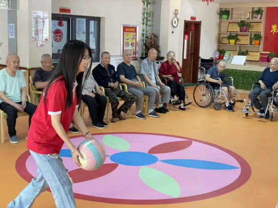为丰富老人们的文化生活,增进彼此间的情感交流,服务团成员们还精心策划了一系列互动环节。从轻松愉快的晨间操到趣味横生的扔篮球、下跳棋等游戏,老人们在成员们的陪伴下,逐渐忘却了身体的疲惫,现场充满了欢声笑语,气氛温馨而融洽。