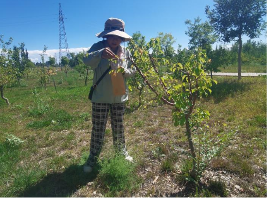在与当地农发中心工作人员的深入交流中,实践团了解到当前团场的生态系统组成、病虫草害的治理及防治中存在部分问题。这些有害物种会对当地生态系统造成严重的破坏,对生态环境和经济发展产生负面影响。针对以上发现的问题,实践团成员当即对当地农业、林地、草原有害生物进行了详细的普查工作,采集了农林业有害生物的样本,及时发现和控制这些物种的扩散和爆发,联系专业老师进行病虫草害的识别,还利用自身的专业知识为农户和工作人员解惑并提供防治策略。同时,创建了线上平台,为保障新疆农林业生态安全做出了积极的贡献。作为当地工作人员与高校专家双向交流的枢纽。普查结束后,实践团成员认真整理了数据,为当地的农林业部门提供及时且完整的有害生物名录,并制作出新疆农林草业的有害物种标本,解决了农户和工作人员不能正确识别和认识有害生物的根本问题。