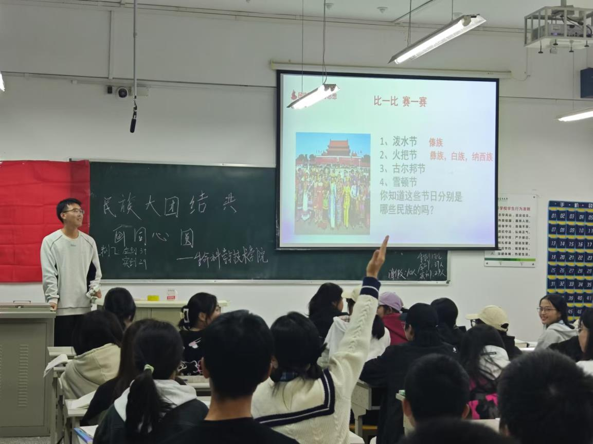 问答环节,涵盖了各民族的历史、文化、风俗、习惯等多个方面,同学们积极参与,争相回答问题。通过问答,同学们不仅在轻松愉快的氛围中学到了丰富的民族文化知识,极大地激发了同学们的学习热情。