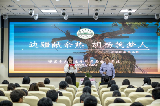 在互动环节,同学们积极提问,韩教授对大家提出的“来塔大支教的体验”以及“如何看待压力”等问题进行了深入交流。他指出,塔大所孕育的胡杨精神,体现了人文之美与自然之景的和谐共融,同学们应该深感自豪。针对压力问题,建议同学们应依据自身实际情况,合理评估并调整心态。