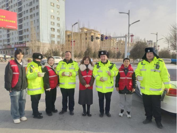 刘宝莉和志愿者们还来到交警执勤点,将热气腾腾的汤圆送到执勤交警,并表达对交警们无论寒暑、始终坚守岗位,保障道路交通安全与畅通的崇高敬意。