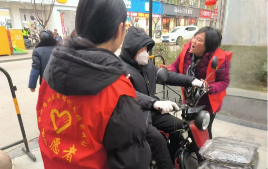在广场入口处,志愿者们化身“安全卫士”,维持交通安全,帮助指挥车辆在安全停车位停放避免安全隐患;向搀扶行动不便的老人走向较为空旷且安全的位置。