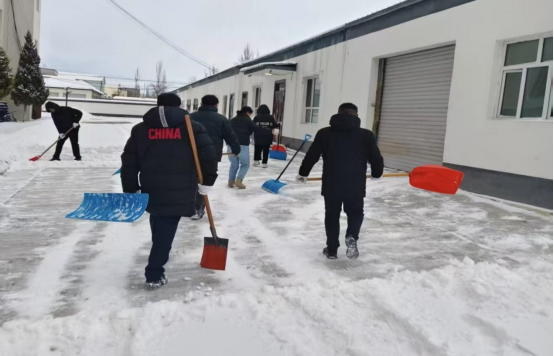 大雪来临,志愿者们拿着扫雪工具,在路面上认真地进行清雪工作。看着居民们能安全出行,志愿者们深感付出的一切都是值得的。
