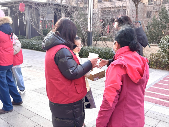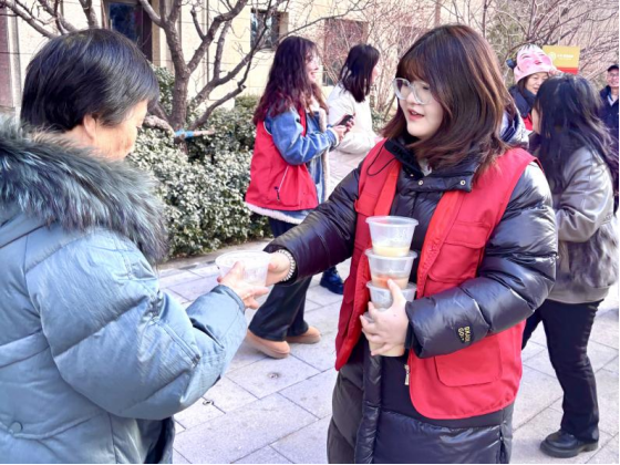活动当天,志愿者们分工明确,有的负责烧水煮元宵,有的负责分发一次性碗筷,他们都希望能将这份节日的祝福完整地传递出去。志愿者们双手捧着装满元宵的小盒子,穿梭在人群中。活动现场,一位阿姨还带来了自己亲手做的元宵分给大家,她笑着说:“独乐乐不如众乐乐,大家一起过节才更有滋味。”还有一位奶奶激动地说:“这些孩子们让我们感受到了节日的温暖,这个元宵节过的特别有意义。”