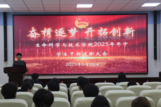 为全面总结学院团学工作阶段性成果,加强学生干部队伍建设,6月20日,生命科学与技术学院团委在国重楼B301会议室召开2025年上半年学生干部述职大会。学院党委副书记邢金明、团委书记许疆维、学生办公室主任艾山江及全体团学干部、学生代表出席本次大会。会议由学院兼职团委副书记周振祥主持。