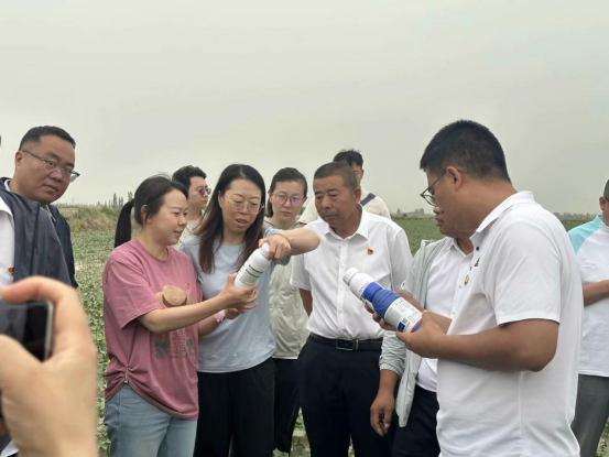 活动中,实践团深入夏喀勒村的棉花示范田和冬小麦示范田,实地勘察作物生长状况。针对农田管理的关键技术环节,团队成员围绕灌溉、施肥、农药管理等方面展开专业指导。他们俯身在田间地头,细致分析土壤墒情与作物长势,向村民耐心讲解生物农药和生物肥料的科学使用方法,手把手传授绿色农业技术。“这种生物肥能改善土壤结构,还能减少化学残留。”刘琴老师一边示范一边向村民解释,切实将先进的农业科技知识送到农民身边,助力当地农业实现绿色高质量发展。