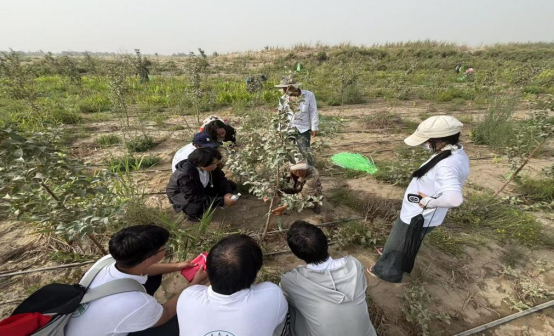 在种树防沙、果树修剪实践活动中,实践团成员们更是热情高涨。在企业工人管理员李军昌老先生的耐心讲解与指导下,大家分工协作,有的挖坑、有的扶树、有的浇水、有的修枝,每一个环节都一丝不苟。尽管天气炎热,但成员们的热情丝毫未减,他们用实际行动为当地的防沙治沙工作贡献着自己的一份力量。在劳动过程中,郑总经理还向大家讲解了种树防沙的技巧和重要性,让成员们深刻认识到防沙治沙对于改善当地生态环境、保障农业生产的关键作用。