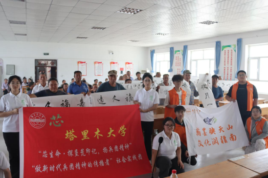 7月7日,生命科学与技术学院暑期三下乡“芯生命·探垦荒印迹·扬兵团精神”社会实践团联合“翰墨映天山,文化润江南”团队一起走进第一师十二团十一连,开展了一场别开生面的兵团精神宣讲活动,此次活动以奋斗故事为纽带,致力于让兵团精神在基层落地生根。