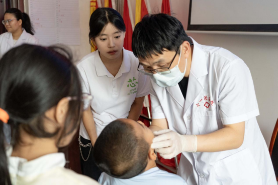 口腔健康素养提升部分,实践团成员在现场分离出口腔咨询区。来自浙江宁波的援疆医生赵日主任在现场免费为大家检查口腔问题,为大朋友和小朋友讲解龋齿的危害和预防方法。并现场演示了正确的刷牙姿势,通过小游戏,让孩子们在互动中了解牙齿结构。学生们在轻松愉快的氛围中学习到了保护牙齿的重要性和实用技巧。