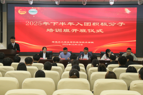 为加强共青团组织建设,提升入团积极分子思想觉悟,10月10日,生命科学与技术学院2025年下半年入团积极分子培训班于国重楼B301会议室隆重开班。学院党委副书记、纪委书记邢金明,团委书记许疆维,学生办公室主任艾山江·艾买提,辅导员张影、邓成华出席本次开班仪式,会议由学院兼职团委副书记周振祥主持。