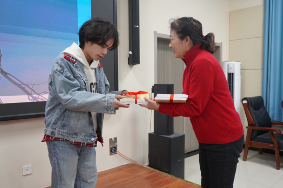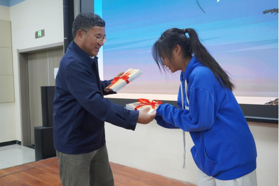 为帮助师生更深入研读两位院士的先进事迹,传承弘扬院士精神,交流环节结束后,吴晓东教授与周保莉副教授代表生命科学与技术学院,向现场参会学生赠送《吴明珠传》《刘守仁传》书籍,鼓励大家认真研读,从院士事迹中汲取精神养分,将胡杨精神内化于心、外化于行。