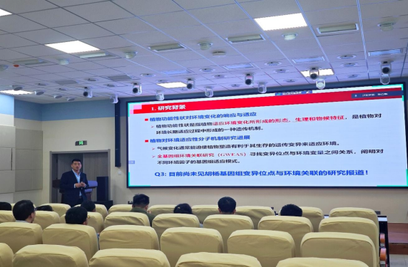 本次学术沙龙的主讲人是2023年毕业博士生盖中帅,塔里木大学生命科学与技术学院博士生党支部副书记、专任教师,塔里木大学“A类”引进博士,新疆维吾尔自治区“天池英才”,主要研究方向是植物遗传多样性保护和适应性进化。他针对博士期间研究项目做了“胡杨居群遗传结构及适应性进化研究”的沙龙报告,报告结束后与研究生们进行了精彩的互动和交流。