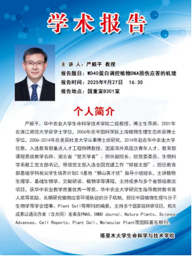 活动期间,华中农业大学生命科学技术学院生物科学系教工党支部书记严顺平教授(二级教授、博士生导师)应邀为塔里木大学师生作了题为《WD40蛋白调控植物DNA损伤应答的机理》的学术报告。严教授深入浅出地阐述了WD40蛋白在植物DNA损伤应答中的调控机理,其研究成果发表于PNAS、EMBO Journal等国际知名期刊,为在场师生带来了一场学术盛宴。