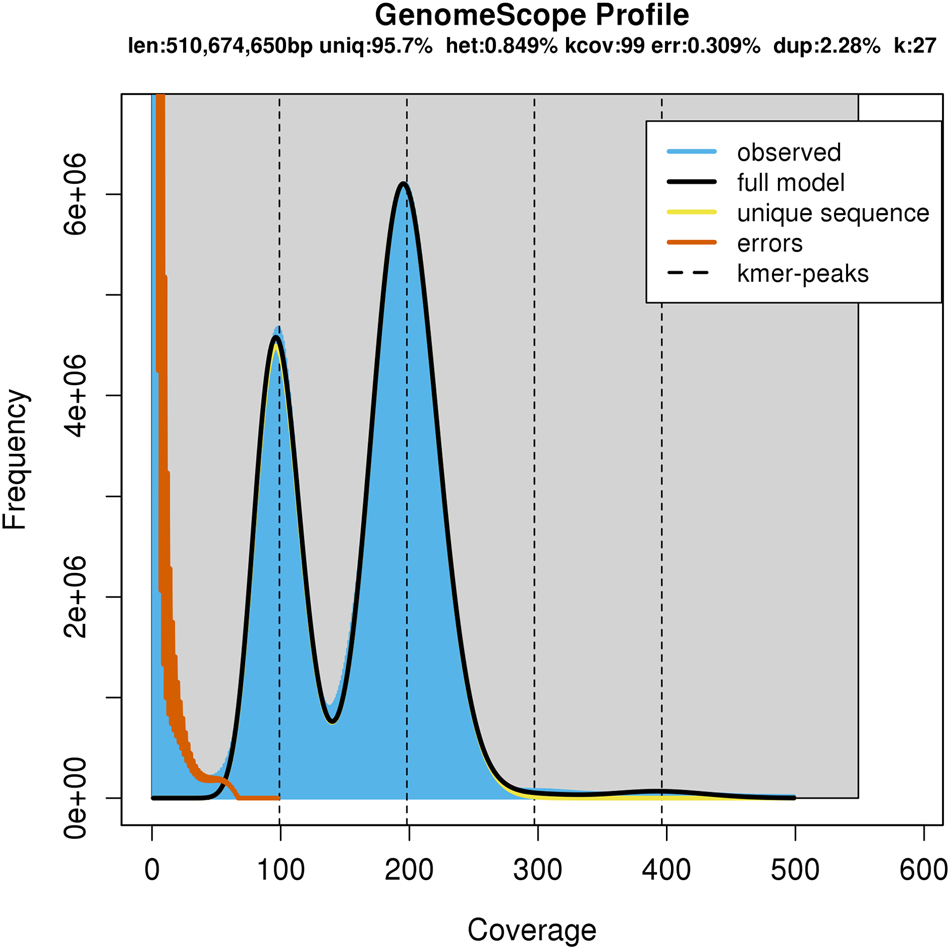 基于K-mer分析方法的Triplophysa bombifrons基因组大小估算结果,
