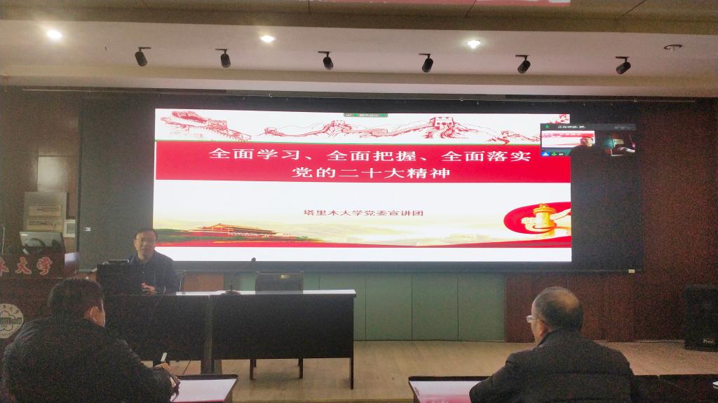 2022年12月14日下午,塔里木大学党委宣讲团成员王成涛到生命科学与技术学院宣讲党的二十大精神,学院全体教职工认真聆听了宣讲报告。宣讲报告由学院党委书记万传星主持。