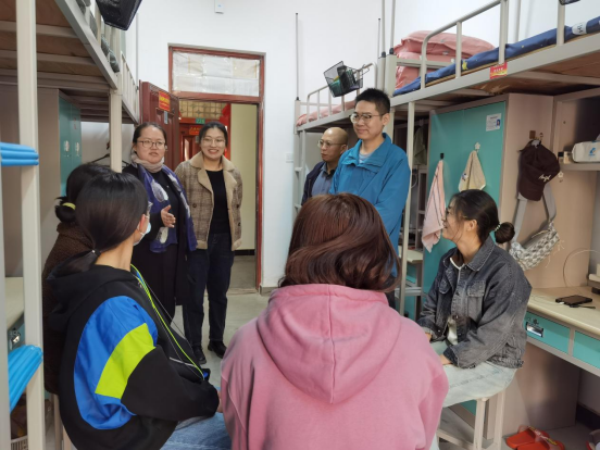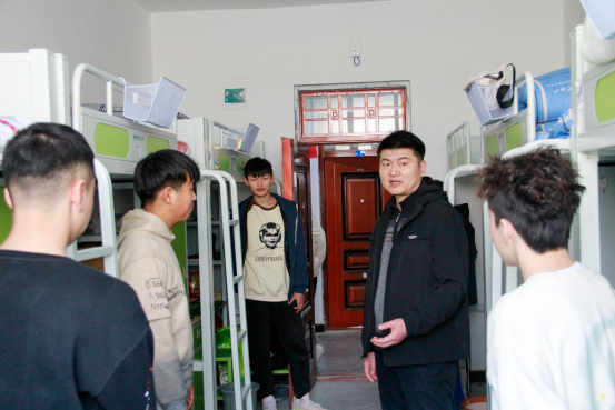 全体教师深入学生宿舍,详细了解学生寒假期间思想状况、家庭情况、到校后对学校环境的适应情况、寝室通风消毒和学生身体情况,与同学们亲切交流,关注开学初学生思想、心理、生活、就业情况,听取学生意见,耐心解答学生提出的问题,并鼓励大家认真学习,劳逸结合,多参加体育锻炼;日常注意春季防寒保暖,注意人身财产安全、交通安全、用电安全,宿舍不私拉电线,不使用大功率电器。鼓励大家树立长远目标,明确未来努力方向,练就过硬本领。