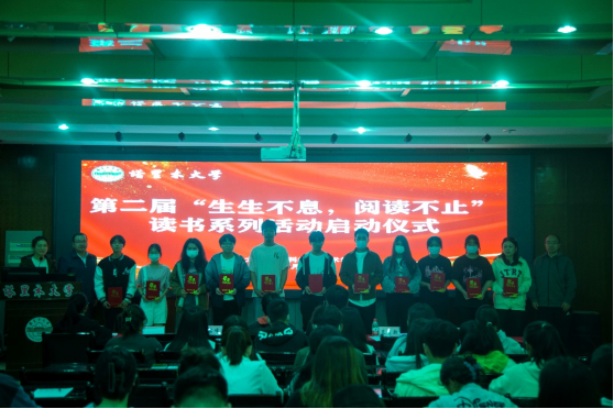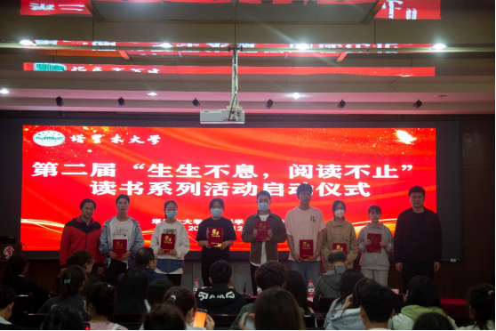 学院领导、老师为第一届“生生不息,阅读不止”读书活动获奖学生颁奖。