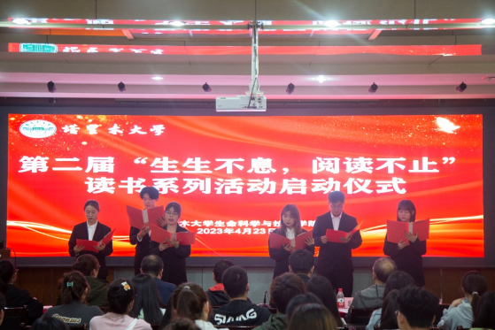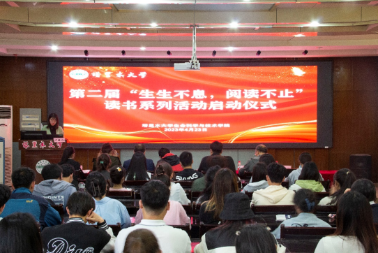 崇德修身、启润青春。4月23日,在第28个世界读书日来临之际,生命科学与技术学院举行第二届“生生不息,阅读不止”读书系列活动启动仪式,活动旨在深化明德厚学书香学院建设,引导广大师生在读书中开阔视野、在读书中学会思考、在读书中享受生活;促使学生养成良好的阅读习惯,营造全民阅读的学习氛围。学院党委书记万传星等学院领导及80余名读书爱好者参加活动。本次活动由许疆维老师主持。