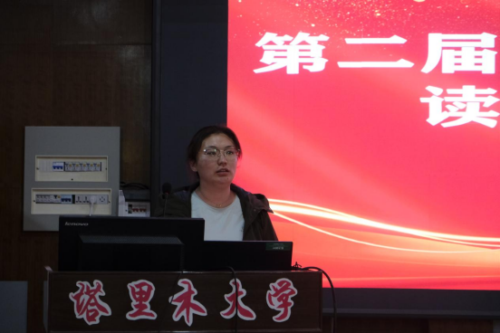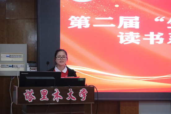 学生代表应用生物科学2022级1班彭慧说:“读书,可以拓宽我们的眼界,获得丰富的知识;读书,能引导我们明理,学会如何做个有修养的人;读书,还能提高我们的阅读能力,养成良好的学习习惯。一本好书就像一艘航船,引领我们从浅狭的港湾驶向生活无限的海洋,希望同学们积极参与到本次的读书月活动中来。”
