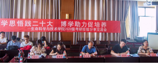 为进一步激发学生考研热情,进一步帮助2020级学生明确考研目标,营造浓厚的考研氛围,帮助学生了解考研基本情况,认清当前考研新形势。6月10日上午,生命科学与技术学院召开2020级考研经验分享交流会。生命科学与技术学院党委副书记王建明,副院长慕自新,教师代表刘逸泠、王鹤萌,博士研究生代表陈喆、徐靖辰,硕士研究生代表吴自豪、郝慧敏,2023年考研上岸的本科生代表刘超文、付小娱以及学院全体2020级有意向考研的学生参加会议。会议由学院学生办公室许疆维主持,在研发中心419会议室召开。