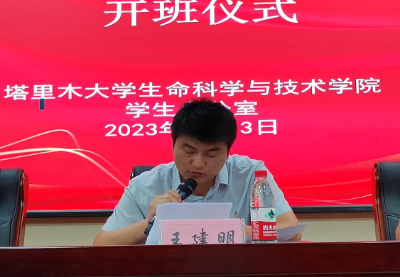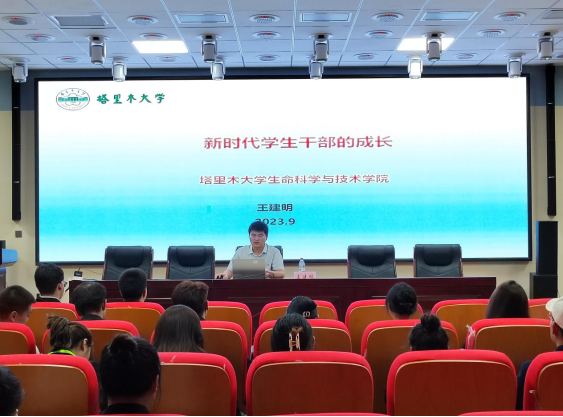 为进一步加强学生干部队伍建设,树立责任意识、团队意识、大局意识,全面提高学生干部的整体素质,9月13日,生命科学与技术学院第八届学生干部培训班开班。学院党委副书记王建明、学生办公室主任艾山江、辅导员邓利军、许疆维、蒋玉祥及全体学生干部参加开班仪式,会议由许疆维老师主持。在南疆现代农业先进技术研究院B301会议室召开。
