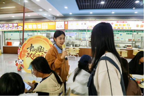 随后开启的“月”字飞花令与击鼓传花小游戏,瞬间点燃现场气氛。飞花令环节,同学们思路敏捷、才思泉涌,“举头望明月”“明月几时有”等诗句接连脱口而出,在诗词接龙中展现深厚的文化素养;击鼓传花环节,接到花的“幸运儿”毫不怯场,有的唱起悠扬的民族歌谣,有的跳起欢快的民族舞蹈,各具特色的表演尽显不同民族的文化风采,台下掌声、笑声此起彼伏,汇成一片欢乐的海洋。