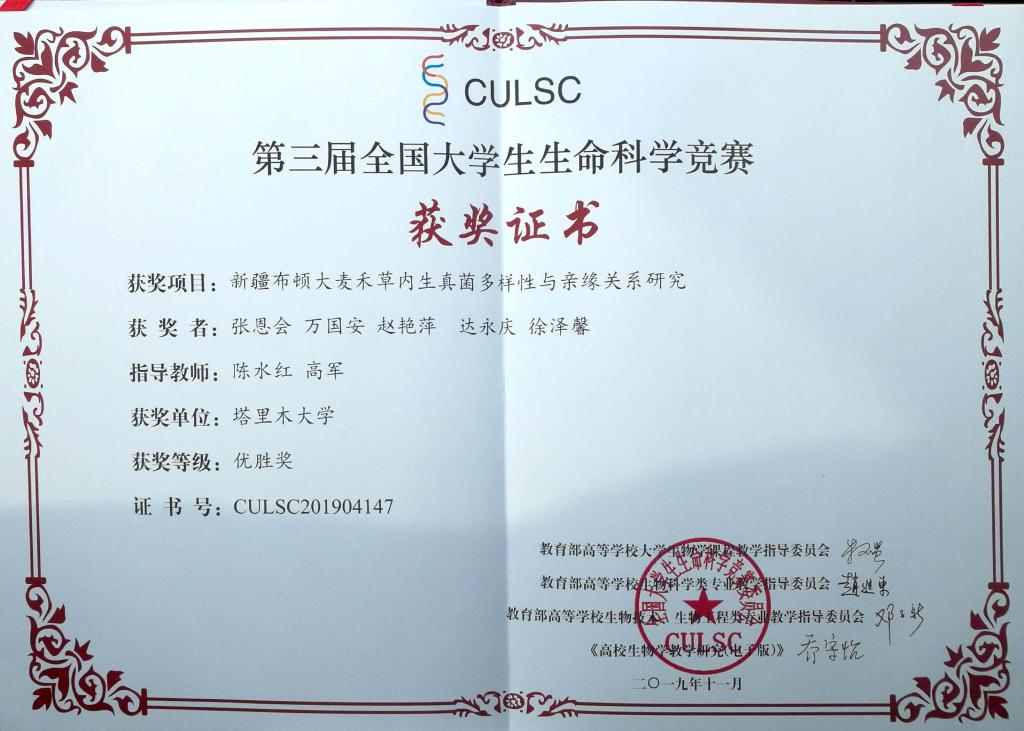 2019年陈水红指导学生学科竞赛省级优胜奖
