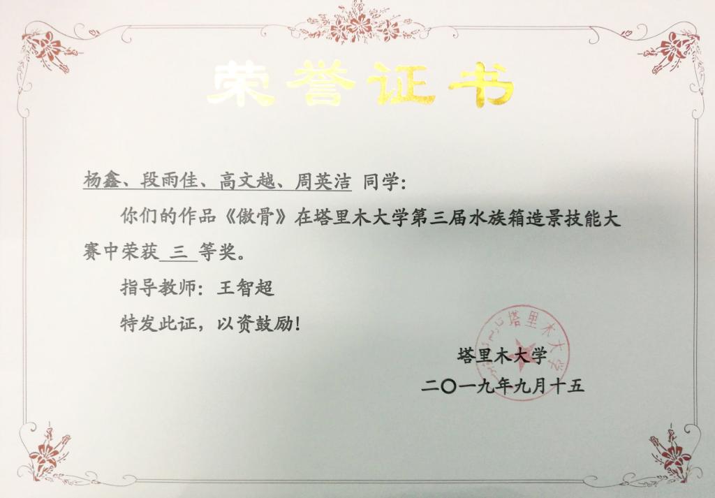 2019年王智超指导水族比赛校三等奖