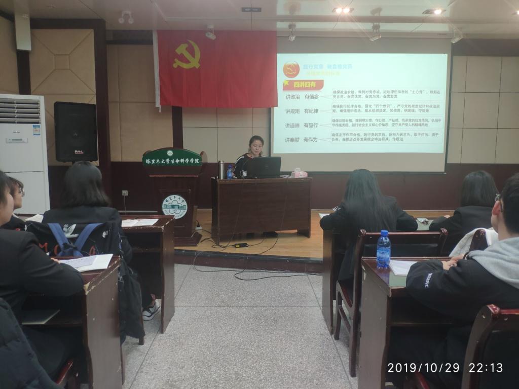 毛伟娜老师在《学习新党章·争做合格党员》的党课上,要求学员认真学习党章,深刻认识新党章是一部更加完善,符合时代要求的条令条例。新党章的修改,是给每一位同学提出了更高的要求。