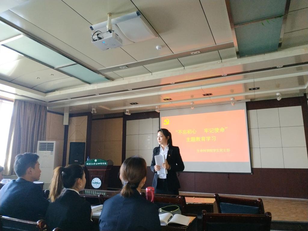 10月9日下午,生命科学学院学生党支部在逸夫实验楼501会议室开展“不忘初心,牢记使命”第二轮主题教育学习活动。活动由支部书记毛伟娜同志主持,全体学生党员和预备党员参加本次学习活动。